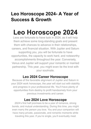 Leo Roars into 2024: Embrace opportunities, ignite passions, and